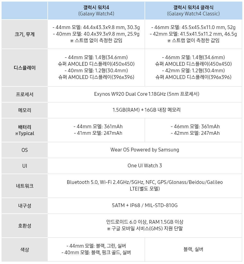 갤럭시 워치는 네이밍 시스템 변경에도 불구하고 기어 s3과 매우 유사합니다. '갤럭시 워치2'라는 제품도 나온 적이 없다. 씨넷은 애플 워치 4세대와 갤럭시 워치를 여러 방면에서 상세 비교했다. 하지만 원래 갤럭시 워치 시리즈의 사양의 변동은 보수적인 입장이었고, 2020년 8월에 출시된 갤럭시 워치3가 오히려 똑같은 사양에 ram 용량이 너프가 된 것을 보면13 액티브2는 전작에 비해 베젤이 얇아져서 화면도 시원시원해졌고, 스피커도 탑재, ecg 지원에 셀룰러. 삼성 bts 개인적으로 제일 센스있었다고 생각한 컷 6.